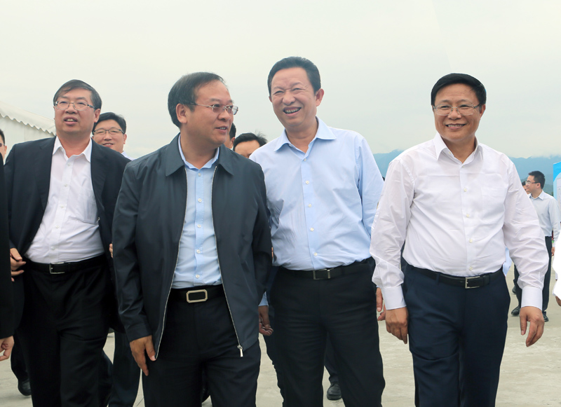 在都江堰特大橋工地主會場,四川副省長楊洪波講話并宣布集中開工活動啟動,成都副市長劉守成代表高速公路集中開工項目的市州發(fā)言,四川省交通廳廳長汪洋介紹四川省集中開工高速公路項目情況,中國中鐵股份有限公司董事長、黨委書記李長進,中鐵城投集團、建設單位、沿線地方代表出席了會議。
