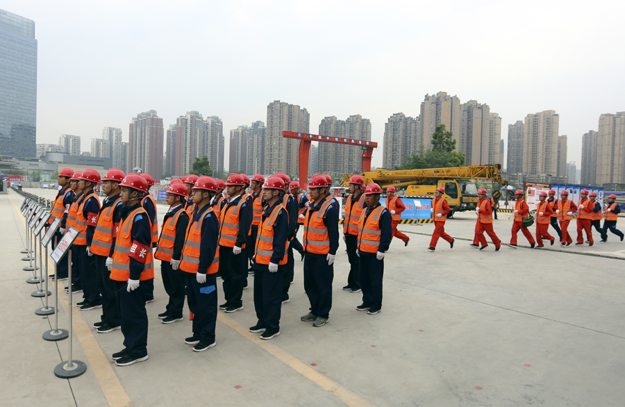 成都市安監(jiān)局、市建委、質(zhì)監(jiān)站、成都軌道交通集團(tuán)、中鐵成都軌道交通指揮部,項(xiàng)目建設(shè)、投融資、施工、監(jiān)理、監(jiān)測等單位200余人現(xiàn)場觀摩演練。