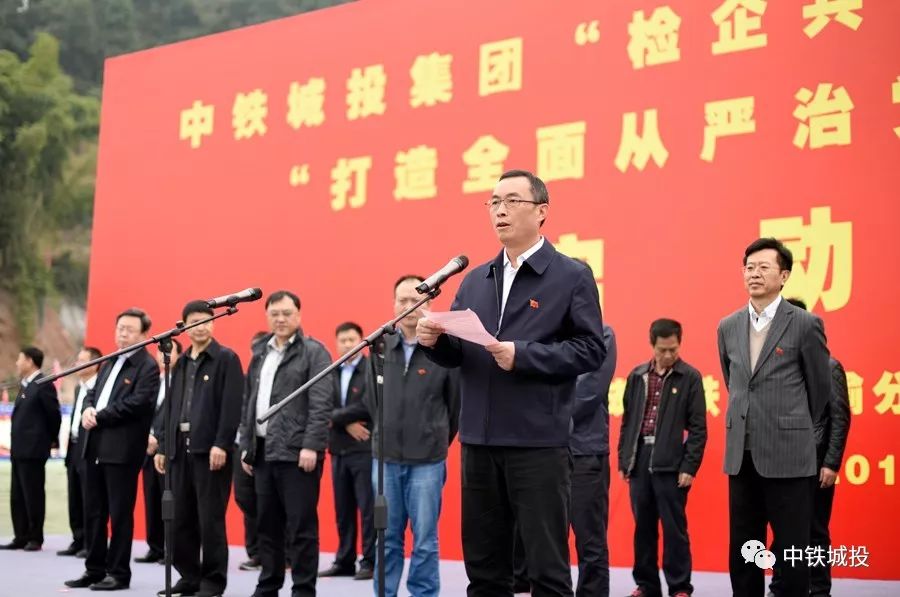 中鐵城投集團黨委書記、董事長龍援青作動員講話。他說,中鐵城投集團要把推進“檢企共建”和打造“全面從嚴治黨示范性工程”作為加強和改進企業(yè)黨建工作的重要抓手,作為推進提質增效的重要載體。天府機場高速公路項目指揮部、各參加單位以及中鐵城投各級黨組織,要以高度的政治責任感,勇于擔當作為,推動活動扎實開展。一要堅持抓實抓細不放松,以打造全面從嚴治黨和廉潔示范工程為抓手,進一步細化實施方案,讓全面從嚴治黨各項要求在項目具體化、規(guī)范化、制度化,實現(xiàn)項目黨建全面進步、全面過硬。及時總結推廣活動中的好經(jīng)驗、好做法,帶動全公司各工程項目、項目各參建單位形成相互借鑒、你追我趕、共同推進的良好氛圍。二要堅持落實責任不懈怠,嚴格落實集團公司黨委領導主體、指揮部黨工委組織指導主體、各標段黨組織責任主體的基本職責;各級黨組織書記要切實履行第一責任人責任,相關責任人要認真執(zhí)行“一崗雙責”;各級黨組織要制定黨建工作責任清單,細化到人、量化到崗。堅持用責任制層層傳導壓力,形成責任明確、協(xié)調有效的工作局面。三要堅持密切聯(lián)系不松勁,主動加強與鐵檢機關的溝通和聯(lián)絡,全力配合鐵檢機關在項目開展預防職務犯罪監(jiān)督、調研等工作,認真聽取鐵檢機關提出的廉潔風險防控意見建議,拓寬反腐倡廉工作思路,力爭取得共建實效。四要堅持統(tǒng)籌協(xié)調不失衡,以活動的開展保障項目建設在安全、質量、工期、效益等方面取得好成績,以施工生產(chǎn)的優(yōu)質成果,檢驗活動的實際效果,做到兩手抓、兩不誤、兩促進。講好中國中鐵和中鐵城投故事,提升品牌影響力,以現(xiàn)場促經(jīng)營,為公司市場開發(fā)貢獻力量。